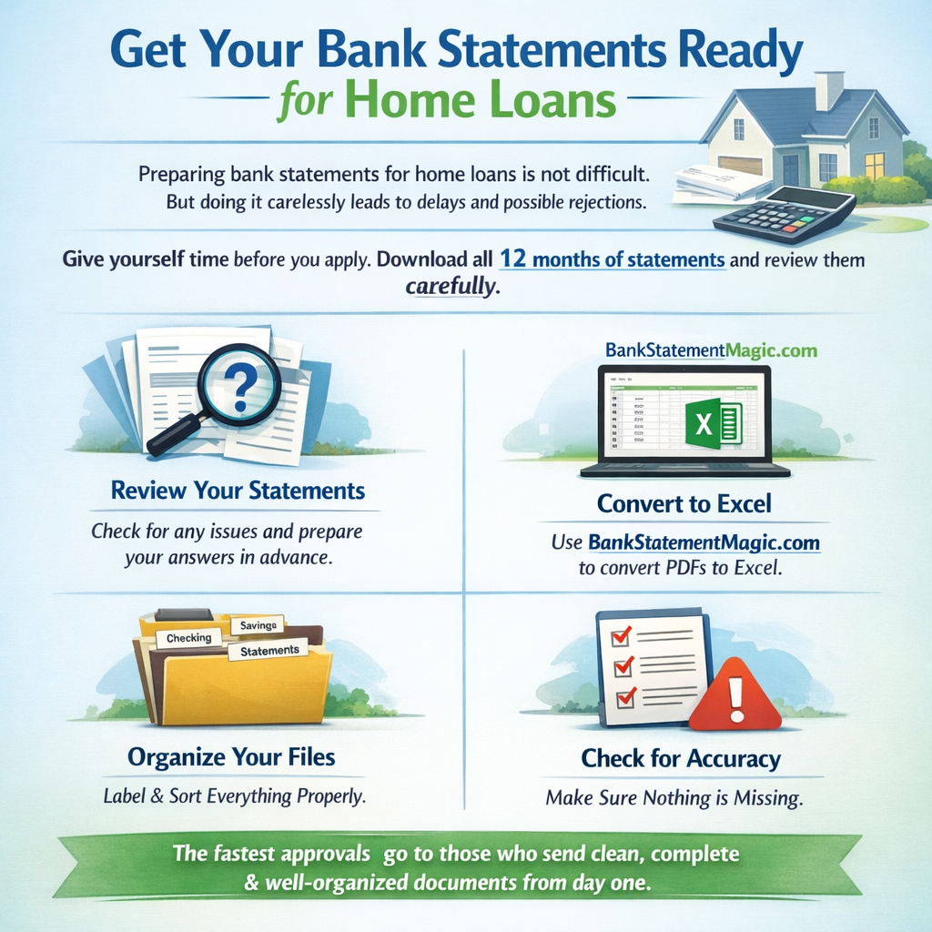 Preparing bank statements for home loans is not difficult. But doing it carelessly leads to delays, additional questions and sometimes outright rejections.