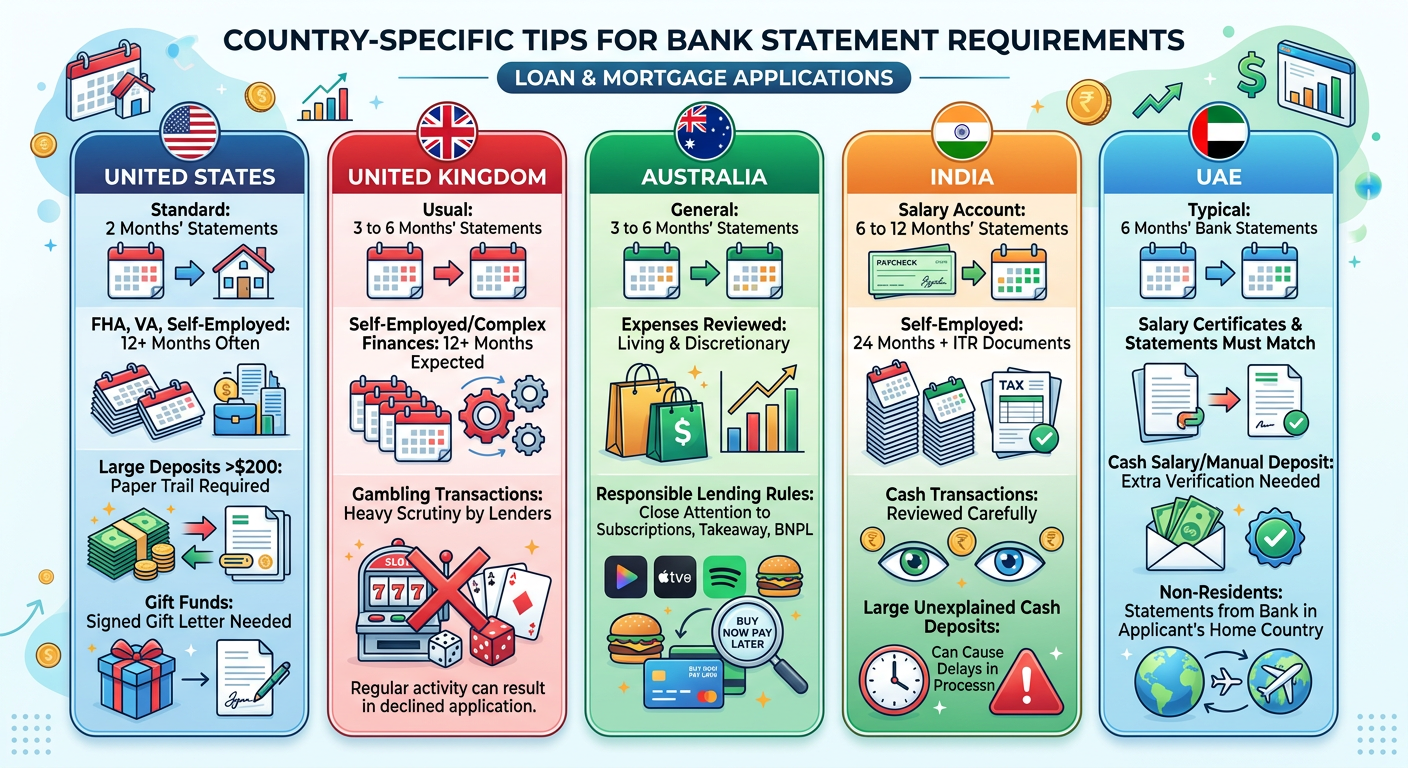 Australian lenders generally want 3 to 6 months of statements. They take care of living expenses as well as discretionary spending. Since responsible lending rules were tightened, lenders pay close attention to subscription services, takeaway food spending, and BNPL commitments.